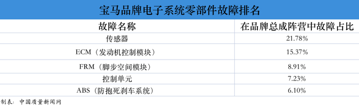在电子系统故障中,ECU车载电控系统、探测(雷达、摄像头)、DCU车载域控制器为故障较为频发的分总成区域。下探至零部件,宝马品牌热门车型上的传感器故障最多,在品牌阵营电子系统总成中占比高达21.78%。而各类传感器的故障,将直接影响功能的使用,导致用户用车满意度降低。