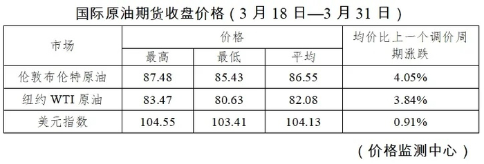 从本轮计价周期来看,尽管国际原油价格走势较为震荡,但整体均价依然上涨。据国家发展改革委价格监测中心监测,本轮成品油调价周期内(3月18日—3月31日)国际油价上涨。平均来看,伦敦布伦特、纽约WTI油价比上轮调价周期上涨3.95%。