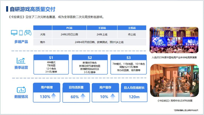 必须指出的是,《卡拉彼丘》上线初期的焦点是做好核心玩法和角色设计,其玩法模式是后续逐渐丰富起来的。而且,从“硬核玩家”入手逐渐向多层次玩家渗透,相当于先打硬仗。随着玩法的逐渐丰富、电竞赛事的完善,以及今年下半年手游的上线,《卡拉彼丘》的商业价值还会大幅提升。在2023年度业绩发布会上,创梦天地CEO陈湘宇说:“(我们的)自主研发能力是坚持精品内容研发,不去追一些短平快的节奏研发。从《卡拉彼丘》大家可以看到,我们敢于挑战高难度的研发内容,内容行业就是要用独特创意才能获得超额回报,这是我们坚信的。”应该说,上述说法是恰如其分的。