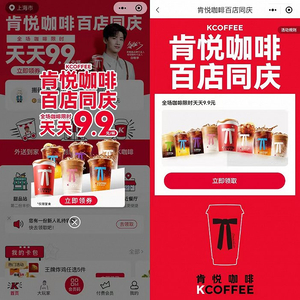 点开肯德基点餐小程序,你会发现它的首页上醒目地打上了“肯悦咖啡百店同庆,天天9.9”的字样。