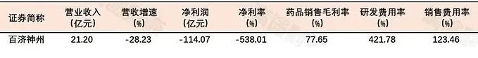 销售费用率甚至会出现大于100%的极端状况,比如百济神州的销售费用率有点吓人,超过100%了,卖100块钱产品花120块钱销售费用,很多互联网企业初期圈地是这么玩的,制药企业也这么玩就很激进了。