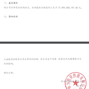 华为投资控股有限公司还表示,上述股利分配系公司正常利润分配,对公司生产经营、财务状况及偿债能力无不利影响。
