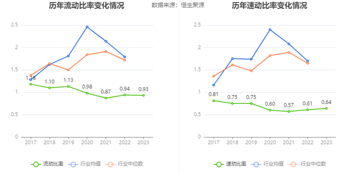 2023年,公司流动比率为0.93,速动比率为0.64。