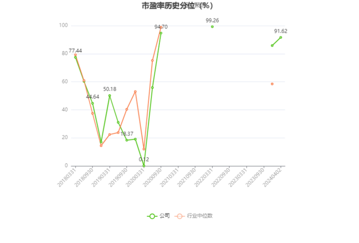 市盈率为负时,不显示当期分位数,会导致折线图中断。