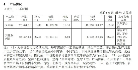 财报显示,2023年,贵州茅台酒产量为57204吨,同比增长0.69%;销量为42109.5吨,同比增长11.1%。