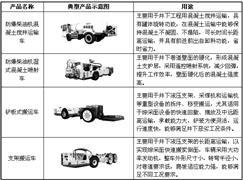 公司矿用辅助运输设备的典型产品及用途如下表所示: