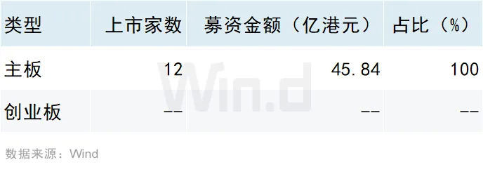 从IPO上市板块来看,2024年一季度共12家企业在香港主板成功发行上市(未包含GEM转主板企业),无创业板上市公司。