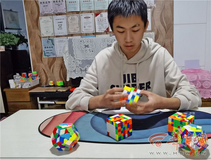 于女士说:“说实话,起初我坚持儿子应以学业为主,还因为他痴迷魔方与他爸发生争执。有段时间家里的手电筒老是没电,后来儿子才向我坦白他因为琢磨还原魔方的方法,在被窝里打手电筒琢磨把电用完了。”