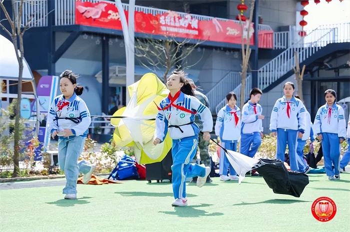 为了使学生能够真实体验飞机着陆时的滑跑过程,研学基地精心策划了一场活动,并为此特地配备了阻力伞这一装置。在辅导员悉心指导下,学生们迅速掌握了阻力伞的操作要领,随后展开了一场紧张而富有竞技性的阻力伞技能较量。