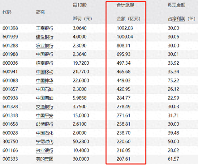中国神华、招商银行、中国移动等千亿龙头的现金分红总额都超过百亿。就连常被市场诟病融资过度的宁德时代(300750.SZ)也给出了上市以来最阔气的分红方案,拟分红超过200亿元。
