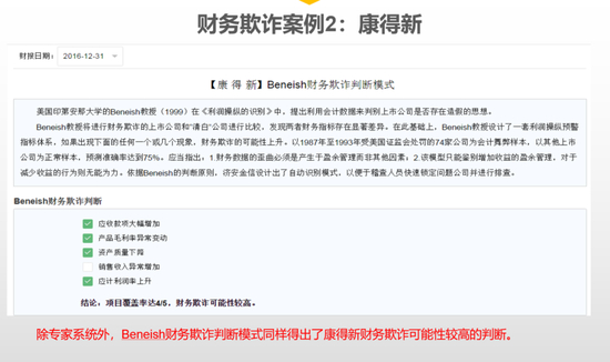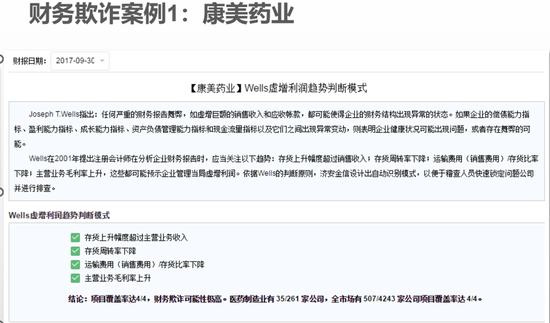 大家可以看看当时系统对康美药业财务造假判断的截屏: