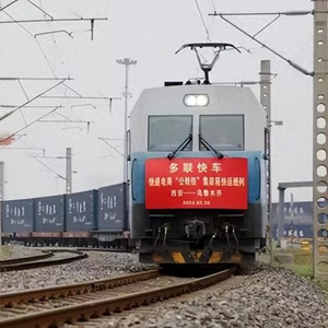 记者了解到,本趟班列发运前的3月26日,举办了X387次快递电商“公转铁”集装箱多联快车发车仪式。