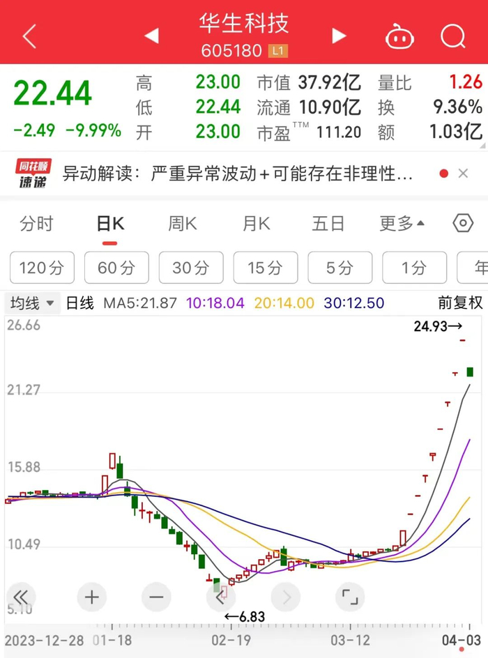 因低空经济题材大热的华生科技,今日早盘低开后被封住跌停板。3月21日至4月2日的9个交易日内,该股均录得涨停板。