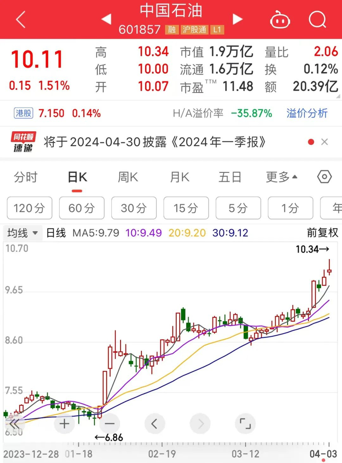 放眼A股市场,周期股无疑是近期“最靓的仔”。4月3日早盘,中国石油盘中一度涨超3.8%,再创八年来新高。除油气板块外,黄金、猪肉、鸡肉、镍金属、稀土永磁、钴金属、航运等周期板块均大幅上涨。