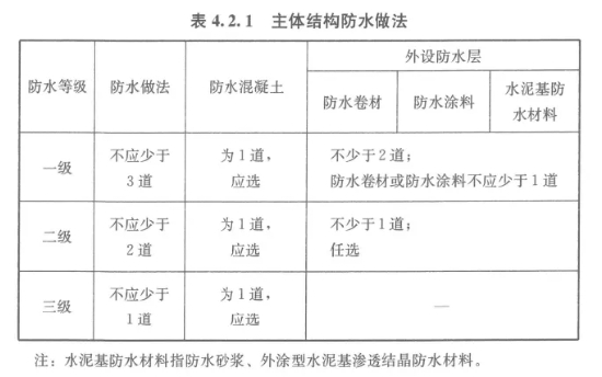 根据《防水强条》要求,城市轨道交通防水工程,依据工程防水类型及使用环境,应设计为一级防水,即明挖法地下工程主体结构防水做法中防水层道数增加——外设防水层不少于2道。