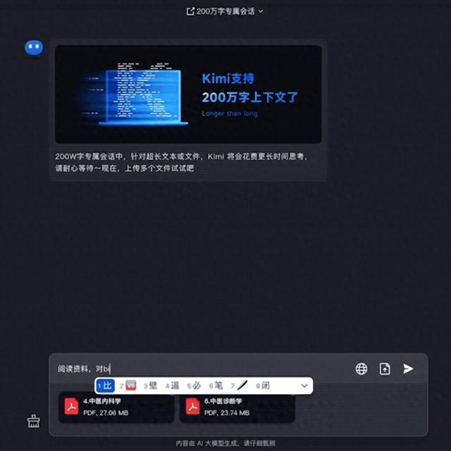 过去要10000小时才能成为专家的领域,现在只需10 分钟,Kimi 就能接近任何一个新领域的初级专家水平。支持200万字超长无损,Kimi让用户更加轻松的快速学习新领域。比如,上传一份完整的近百万字中医诊疗手册,Kimi可以针对用户问题给出诊疗建议。