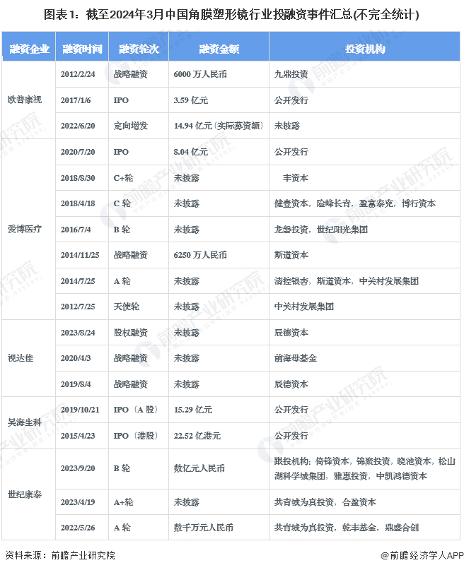 【投资视角】启示2024:中国角膜塑形镜行业投融资及兼并重组分析(附投融资事件、对外投资事件、兼并重组等)