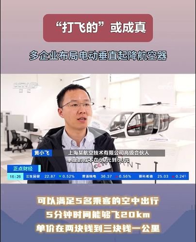 据央视网财经3月30日报道,eVTOL头部企业上海沃兰特航空技术有限责任公司(下称“沃兰特航空”)合伙人黄小飞表示,我们整个的成本结构,5分钟时间能够飞20km,单座的成本在50元到60元,单价在两块钱到三块钱一公里,跟打车的成本已经基本相当了。