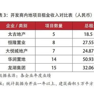 2023年,港资背景的太古地产实现总收入 146.7 亿港元,同比增长6%。其中租金(包含办公楼、零售物业租金)占总营收的九成,增长6%至135.25亿港元,内地零售物业租金收入总额同比增加42%,达41.91亿港元,位列恒隆地产的49.63亿元之后,项目平均租金水平高于国内大多数商业地产开发商。