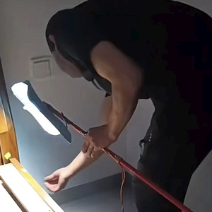 ▲“提灯定损”事件中,房东正在“查找可能存在的损失”。图/社交平台视频截图