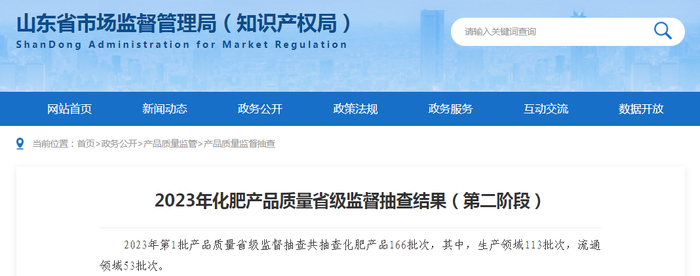 【山东】2023年化肥产品质量省级监督抽查结果(第二阶段)