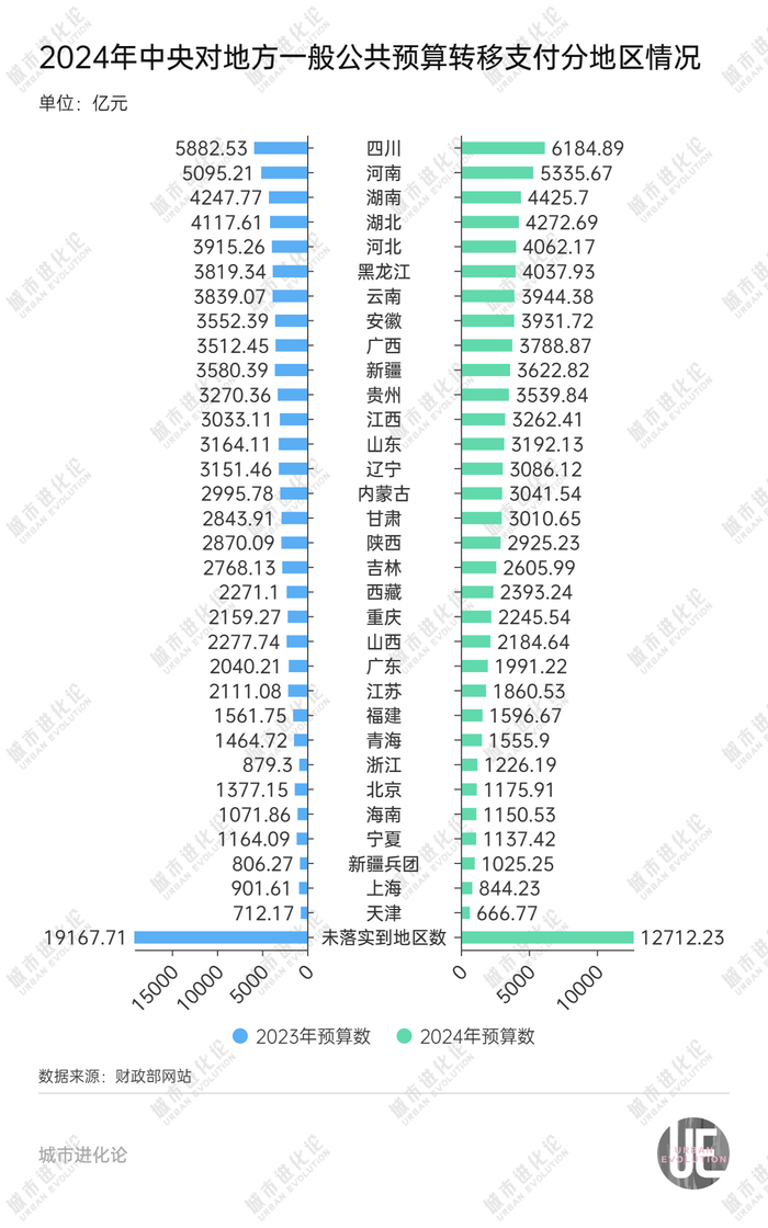 近期,2024年中央财政预算公布。透过这本账,可以看到2023年中央对地方转移支付的执行情况,也能看到2024年转移支付的预算情况。