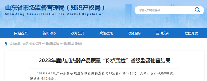 【山东】2023年室内加热器产品质量“你点我检”省级监督抽查结果