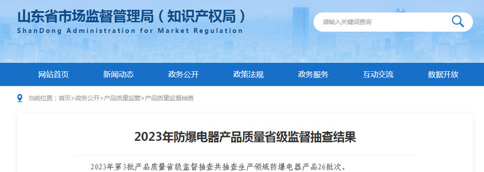 【山东】2023年防爆电器产品质量省级监督抽查结果