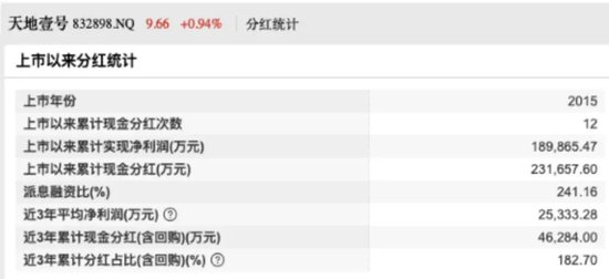 但值得注意的是,据wind统计,2015年至今,天地壹号共分红12次,分红金额合计23.17亿元。与分红相比,天地壹号2015年至今的净利润为18.99亿元。也就是说,八年半里,天地壹号的分红占到了净利润的122.01%。
