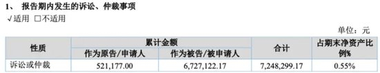 财报显示,截至2023年6月30日,天地壹号还存在多起诉讼、仲裁事项,作为被告、被申请人身份的金额累计达672.71万元,作为原告、申请人身份的为52.12万元。