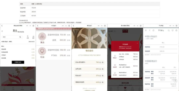 伴随着国际金价的“狂飙”,国内黄金首饰价格也在持续攀升。4月3日,记者从周大福、六福珠宝、潮宏基、周生生等黄金珠宝品牌获悉,当日其境内足金首饰零售价格已突破700元/克,其中较高的已达704元/克。而前述品牌在3月4日公布的境内足金首饰零售价格为636元/克左右,近一个月内已上涨超60元/克。