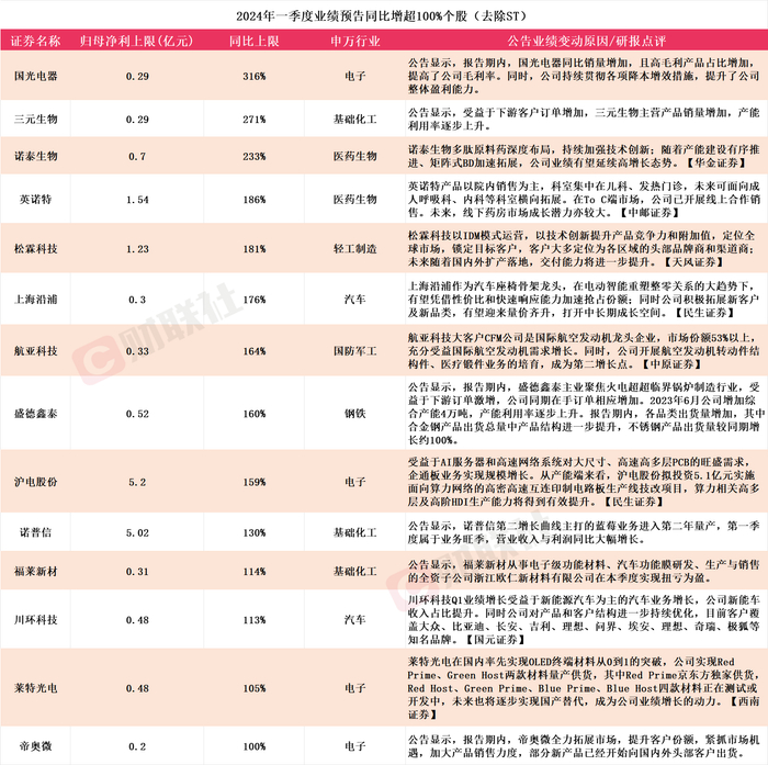 应声连续两个一字涨停!A股一季报行情打响,14家上市公司净利最高同比预增翻倍