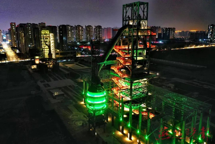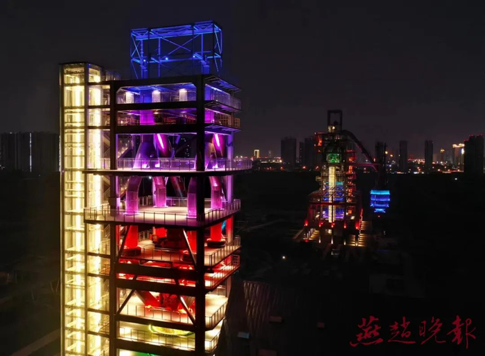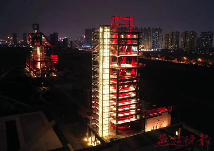 近日,进行灯光调试的石钢工业遗址公园首次灯光全亮,在夜幕的映衬下,冰冷坚硬高大的钢铁建筑配上璀璨炫目的多彩灯光,尽显“赛博朋克”风格,相关图片和视频被发到网络上后,吸引了众多网友的关注。昨日,记者走进在石钢原厂区基础上规划建设的石钢工业遗址公园,探寻曾经属于石钢的“热辣滚烫”,感受创新蝶变之后的潮流与未来。