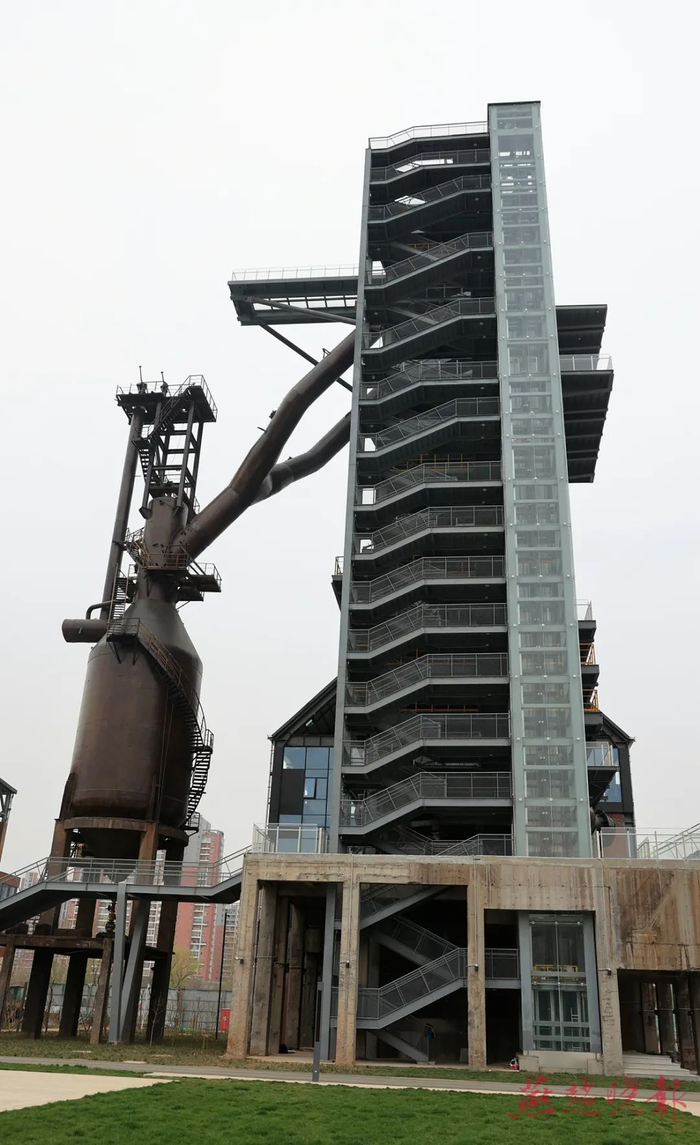 走进石钢工业遗址公园,原厂区保留下来的部分生产车间、设备等工业景观和工业特色元素,给人带来强烈视觉震撼的同时,也撞击着内心对于老石钢的那份柔软的回忆。0#高炉为园区内的主要亮点,高高耸立的“钢铁巨人”似乎在无声地诉说着石钢的过往岁月。经过改造,人们乘坐高炉电梯可以直达高炉最顶端,在高炉观景台俯瞰,遗址公园全貌以及周围城区景色便尽收眼底。连接着0#高炉的观光走廊向四周延展开去,拓展了游览的空间。现场施工的工人告诉记者,他们正在加紧安装亮化设施,另外,还在查看高炉内部的涂装情况等。石钢工业遗址公园在提升改造原有景观的同时,还新建设了沉浸式体验馆、环园步道、地下停车场等,增强公园的旅游功能和服务功能。