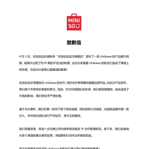 4月3日,名创优品发布致歉信称:
