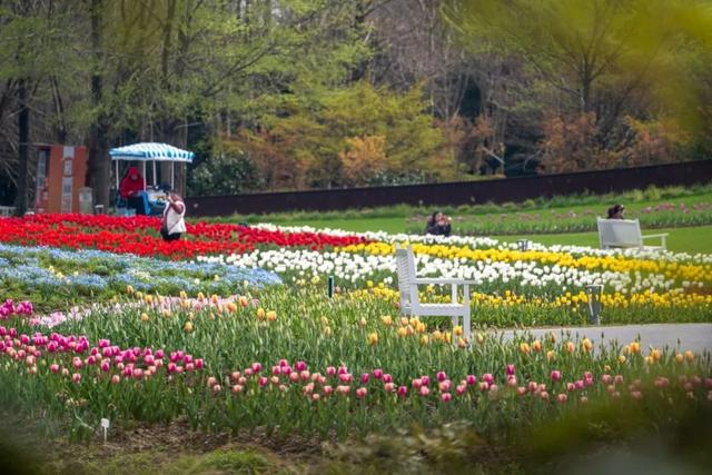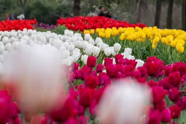 “青锦地衣红绣毯,尽铺龙脑郁金香。”红的、黄的、粉的、白的……朵朵如酒杯状的郁金香花朵,几乎要穷尽人间所有颜色。