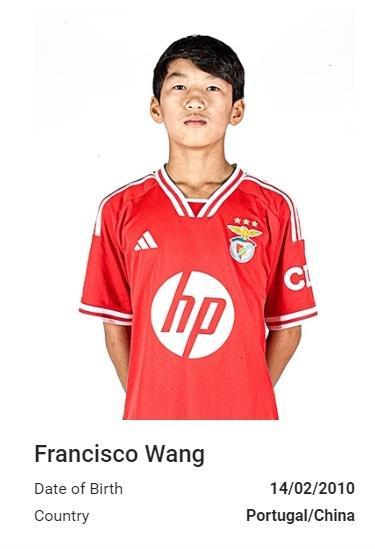 王磊(弗郎西斯科·王)于2010年2月14日出生于葡萄牙,司职进攻型中场,在本菲卡U15B队身穿10号球衣也可以看出他在队内的地位。从网上相关的视频集锦可以看到,王磊技术功底十分扎实,拥有很强的突破能力、变向能力和爆发力,拿球突破、过人时显得相当有自信。