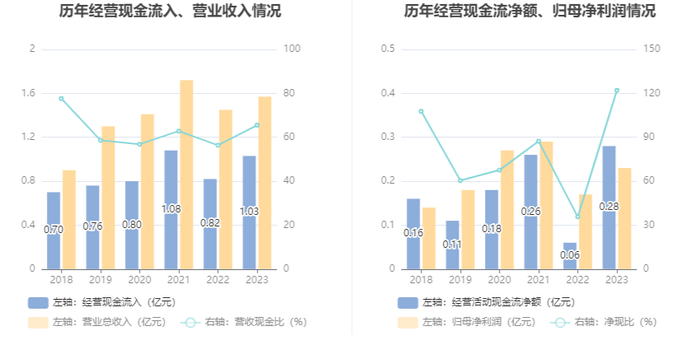 2023年,公司营业收入现金比为65.51%,净现比为122.09%。