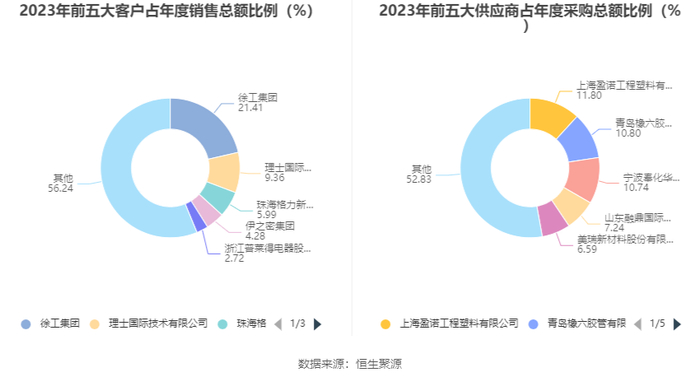 分产品看,树脂软管及总成、改性工程塑料、橡胶软管及总成2023年毛利率分别为43.85%、1.29%、10.31%。