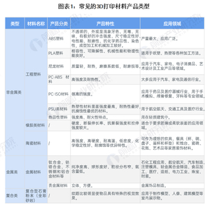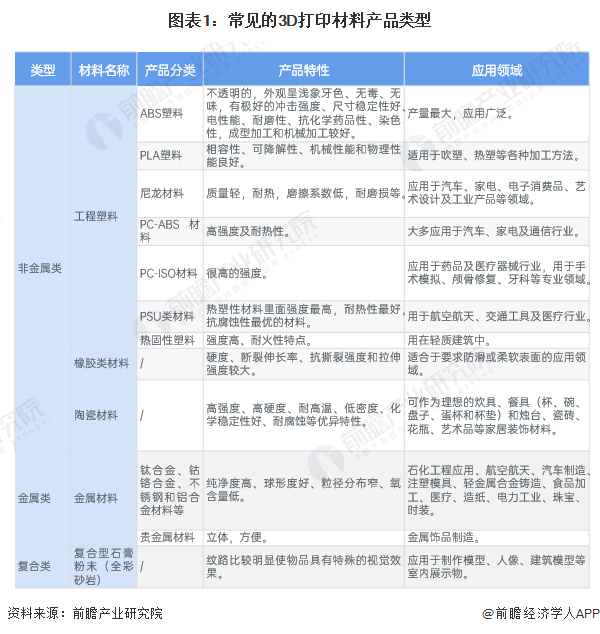 可用作3D打印材料的产品众多,主要包括非金属类、金属类、复合类材料等。