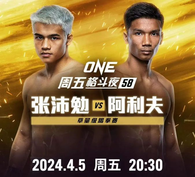 2024年4月5日晚8:30,国际知名体育IP–ONE冠军赛将带来“周五格斗夜”大型格斗赛事。当晚比赛众星云集,泰国名将苏波邦(Superbon Singha Mawynn)将冲击羽量级踢拳临时世界冠军,乔纳森·迪贝拉(Jonathan Di Bella)将与普拉詹猜(Prajanchai PK Saenchai)打响草量级踢拳世界冠军赛。同时,中国名将张沛勉,也将在当晚迎战来自泰国的“KO狂魔”阿利夫(Aliff Sor Dechapan)。