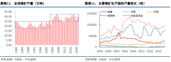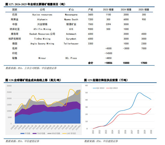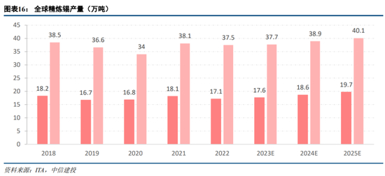 新增资本开支不足,矿石品位下降,2025年之前锡矿增量受限。
