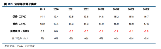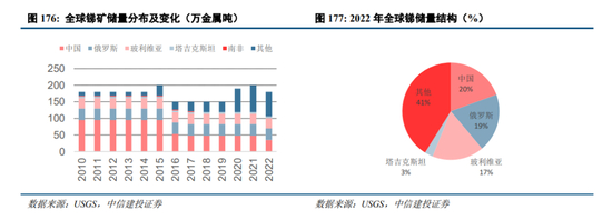 (2)供给端,锡价长期中低位运行,抑制投资信心,新增开支不足导致供应受限。2023年无新项目投产,2025年之前锡矿增量受限。预计2023-2025年全球精炼锡复合增长率约2.3%。