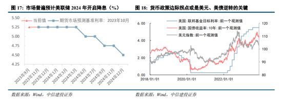 逻辑二:金融属性:美联储加息周期终结,并有望在2024年年中开启降息周期,弱势美元将激发有色金融属性。