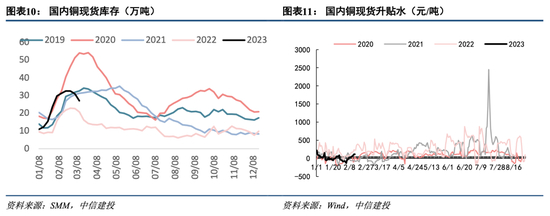 下游消费逐渐好转,支撑铜价。下游消费除与地产相关联的电线电缆表现疲弱以外,白电空调3月排产同比增长28%,全年预计增速10%;新能源汽车配件企业订单饱满,预计全年新能源车增产20%;3月光伏组件排产超50GW,光伏新增装机有望实现20%增幅。除此以外,下游终端原料库存极低,铜价回调至关键阻力位时下游买兴浓郁,是稳定铜价的中坚力量。今年下游恢复节奏与去年不同,去年积累订单在节后集中释放二季度出现断崖,今年订单徐徐流入,符合下游回归的季节性规律,不至于在Q2有失速风险。