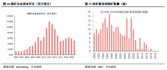 逻辑二:周期属性重估:资源稀缺性日益明显,资本开支不足,供给侧改革效果显现,供给将维持低增速,周期属性将由供需双重波动转为需求单项波动。随着开发进行,埋藏浅的优质矿产逐渐被开发殆尽,不得不向更深处寻找资源,全球有色金属矿石品位大多呈下滑趋势,资源稀缺性日益明显;历史价格处于低位+疫情扰动,全球矿企资本开支不足,资源保障未来或面临挑战;供给侧改革成效逐步显现,全球碳中和压力下矿企产能扩张空间有限;上述条件制约下,预计有色金属行业供给侧将保持刚性,产量将维持较低增速,供需双重波动转为需求单项波动,周期属性或将减弱。