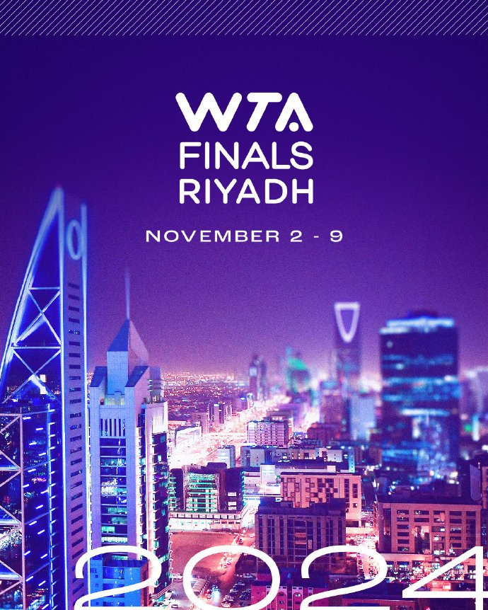 4月4日,WTA国际女子网球协会官方微博宣布,沙特阿拉伯利雅得成为2024至2026年WTA年终总决赛的举办地。2024年总决赛将于11月2日至9日举行,本赛季在通向WTA年终总决赛积分榜排名前八的单打选手和双打组合将入围这项年终盛事。