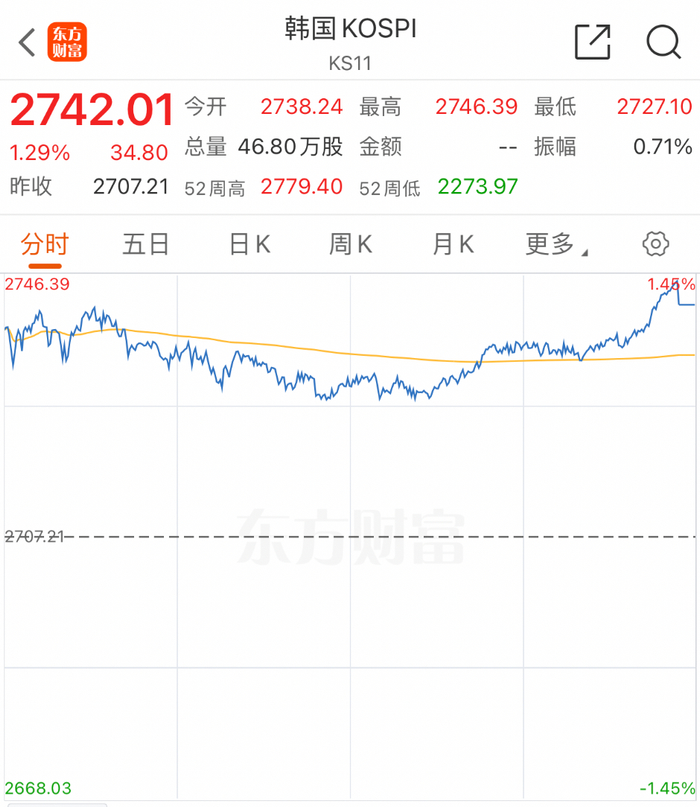 或受此消息影响,韩国股市持续走高,截至收盘,韩国综合指数涨1.29%,年内累计涨幅扩大至3.16%。