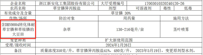 草甘膦转基因作物除草剂获登记公示 图片来源:新安股份