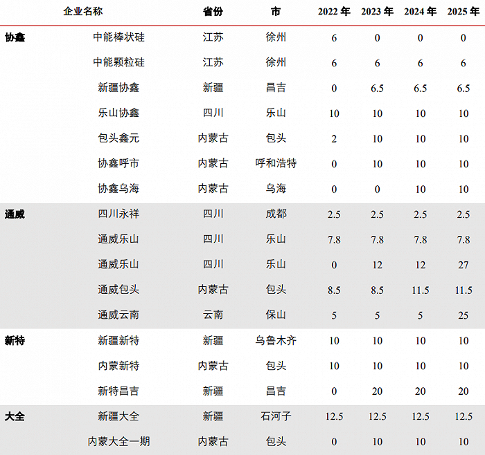 附:2023-2025 年全球多晶硅新增产能情况丨单位:万吨